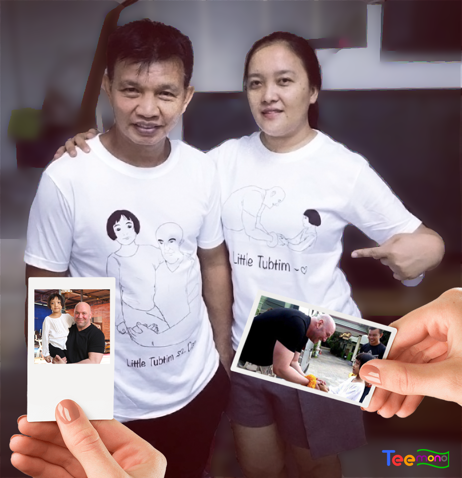 จากรูปถ่ายที่ลูกค้าส่งมาให้เราก็กลายเป็นเสื้อ Teemono สุดสวยแบบนี้ได้ เราสามารถช่วยวาดรูปถ่ายให้กลายเป็นรูปแนวการ์ตูนแบบนี้ได้เพื่อให้เหมาะกับการเป็นลายสกรีนบนเสื้อยืดเหมือนคุณลูกค้าคู่นี้นะคร้าบ^^