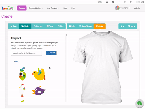 You can provide in-store cliparts for your customers to choose from right in the T-shirt design tool